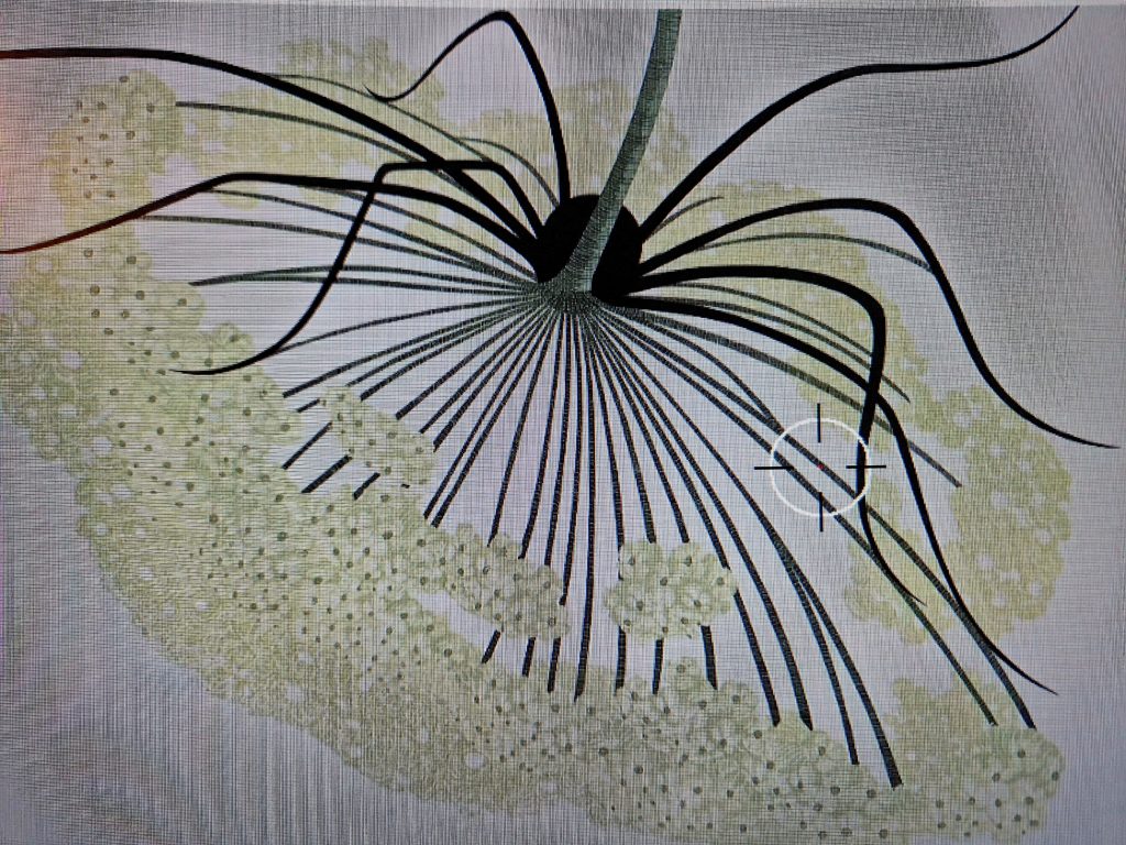 Elle utilise des outils variés, tantôt des crayons de couleurs, tantôt une palette graphique avec pour objectif de capter la lumière et l’attention. Il faut faire très fin, très précis, car le petit peuple de la nature est un infini de délicatesse et de fragilité. Mais elle va jusqu’au bout, sans se décourager, et retravaille ses épreuves jusqu’au dernier instant.