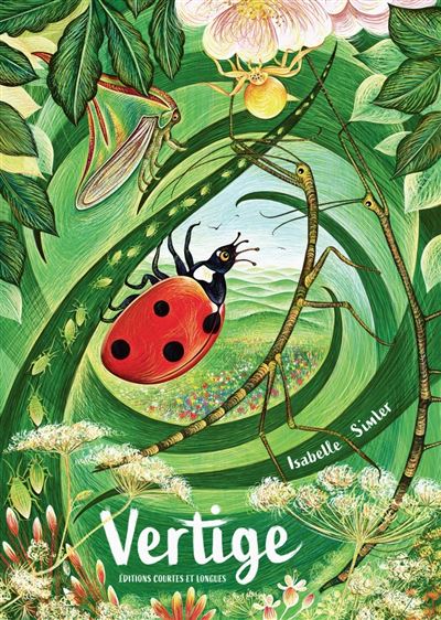Créé pendant le confinement, cet album montre comme il est possible, lorsqu’on ne peut pas aller bien loin, de cheminer dans un univers bien réel mais tout petit et qui est là comme disponible à nos pieds. Un monde bien réel, fascinant, étonnant, parfois inquiétant. L’héroïne est une coccinelle qui se met en quête d’un nid sûr où pondre ses œufs et qui rencontre toutes variétés d’insectes dédaignés ou redoutés : sauterelle, ombonie épineuse, phasme-bâton, araignée-crabe…Isabelle a voulu jouer avec les couleurs et les formes. Et nous en mettre plein la vue.